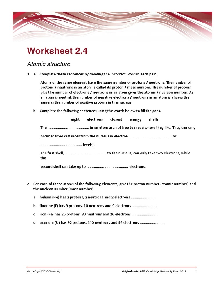 Atomic Structure Worksheet Answers Chemistry - Worksheet Atomic Structure Answers Worksheet List - This worksheet is intended for upper middle s.